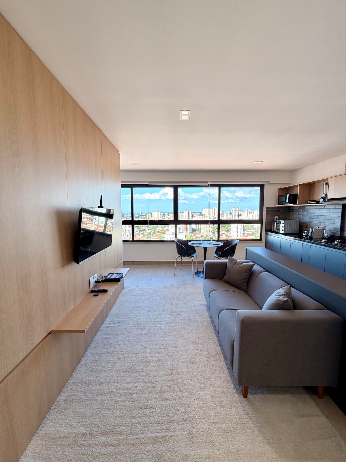 Moderno apartamento de 2 quartos e 2 banheiros (sendo uma suíte). TV smart na sala para curtir seus streamings. A sala ampla é perfeita para relaxar e conta com uma cozinha estilo americano completa. Localização privilegiada, próximo à USP, Centrinho e CPO, com fácil acesso a restaurantes, bares, mercados e shoppings, ideal para quem busca conforto e praticidade em um ambiente urbano vibrante.