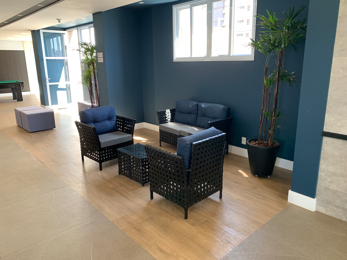 Moderno apartamento de 2 quartos e 2 banheiros (sendo uma suíte). TV smart na sala para curtir seus streamings. A sala ampla é perfeita para relaxar e conta com uma cozinha estilo americano completa. Localização privilegiada, próximo à USP, Centrinho e CPO, com fácil acesso a restaurantes, bares, mercados e shoppings, ideal para quem busca conforto e praticidade em um ambiente urbano vibrante.