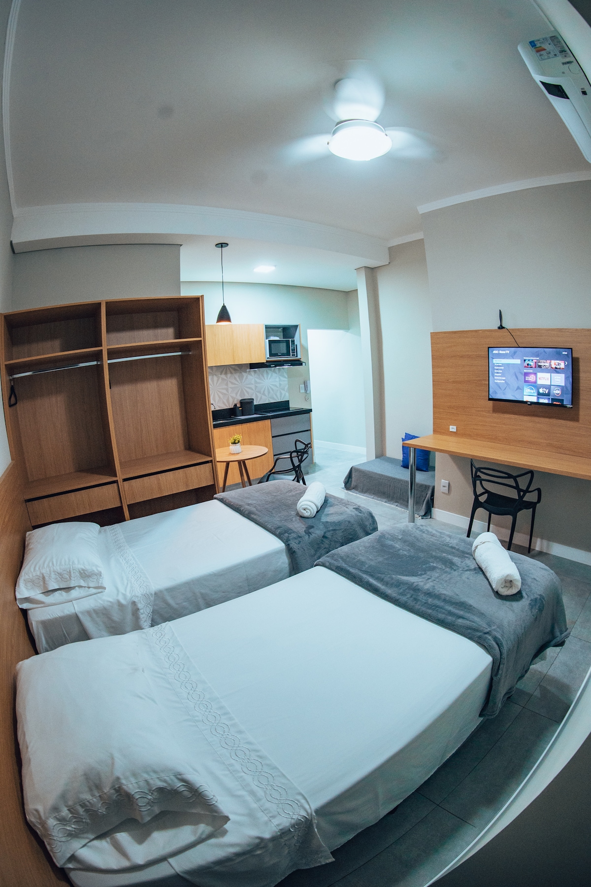 O Estoril Estúdios em Bauru oferece acomodações e comodidades que visam proporcionar uma experiência confortável e agradável para os hóspedes. - Os estúdios são projetados para oferecer conforto e privacidade, equipados com camas de qualidade, ambiente climatizado e decoração acolhedora. -Localização Privilegiada,situado em uma área estratégica de Bauru, próximo a pontos comerciais, restaurantes e atrações locais.