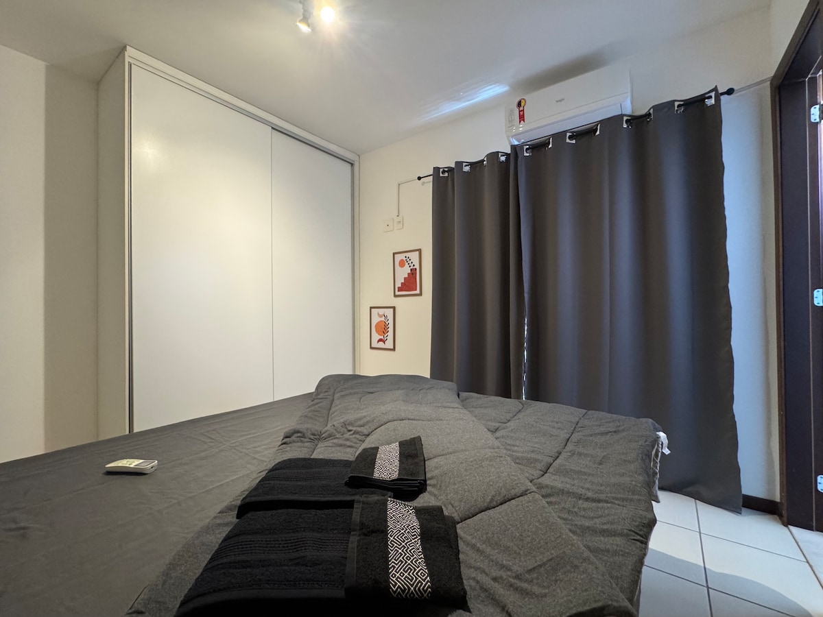 Equilíbrio perfeito entre conforto e sofisticação.❣️ Com design moderno, ar-condicionado e Wi-Fi rápido. Um mix de praticidade e estilo em cada detalhe, ideal para lazer ou trabalho. Localização privilegiada, próximo ao Bauru Shopping, bons restaurantes e com um pôr do sol encantador. O espaço é moderno e funcional, com cozinha equipada (talheres, pratos, utensílios),cama confortável e móveis planejados. O banheiro é completo e pensado nos detalhes para o bem-estar do hóspede.
