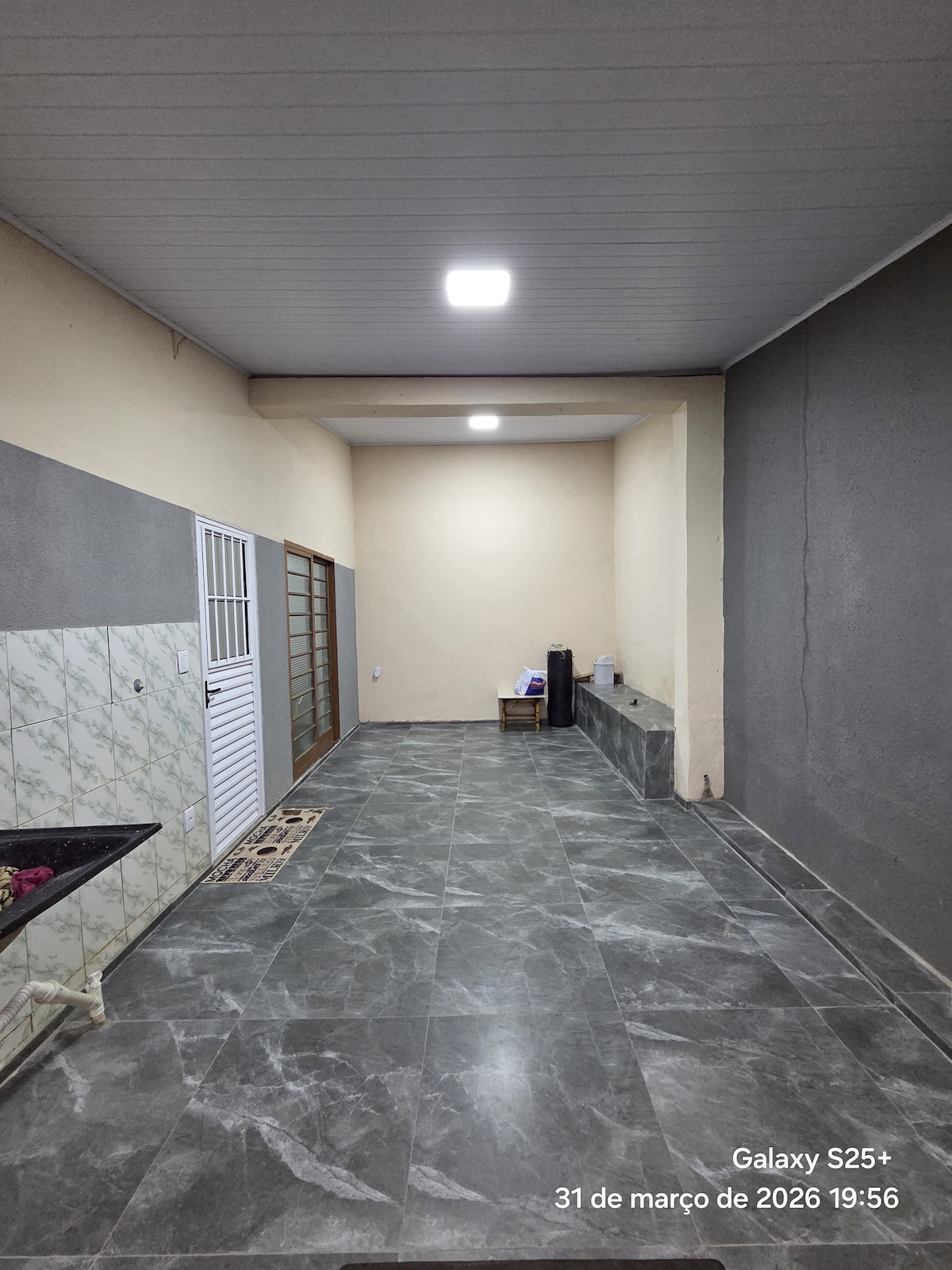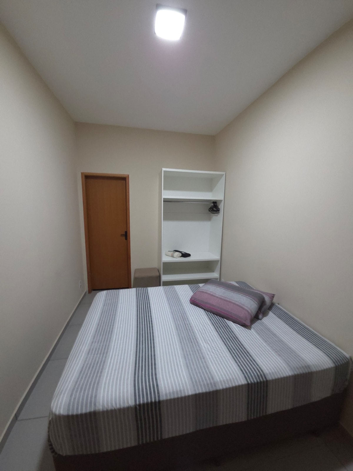 A casa possui ventiladores de teto no quarto e sala,possui garagem coberta para 2 carros. Há uma camera no poste/portão/calçada ,que permite termos acesso a chegada do hospede . Casa com todo conforto e privacidade. Na esquina tem uma padaria e há um mercado há 2 quadras.Parada de onibus em frente a casa.