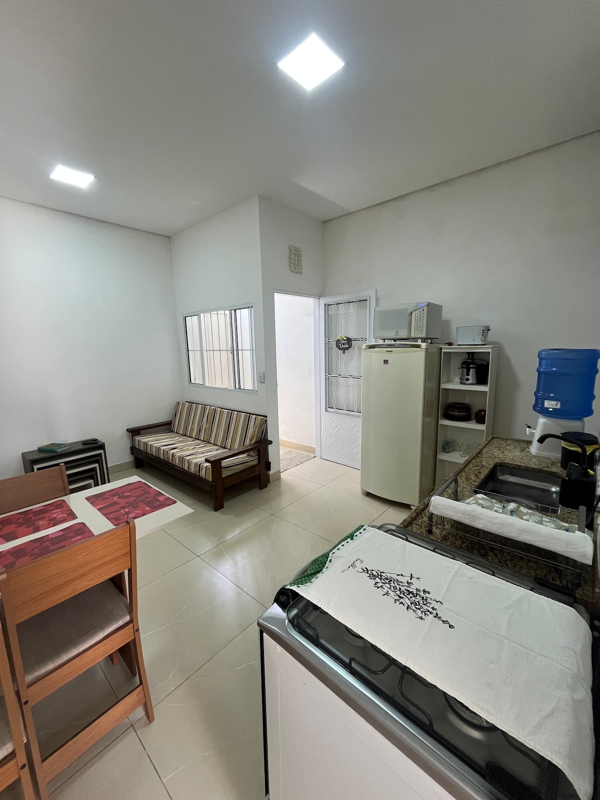 A casa fica bem centralizada e o espaço do quarto dos hospedes tem entrada privada. O hóspede poderá usufruir dos espaços compartilhados da casa: , área interna com pia para lavagem de louças, filtro, lavanderia . Fica próxima de Supermercados, farmácias, restaurantes além de duas universidades: USC e USP/Centrinho. A vizinhança é tranquila e o bairro bem seguro.