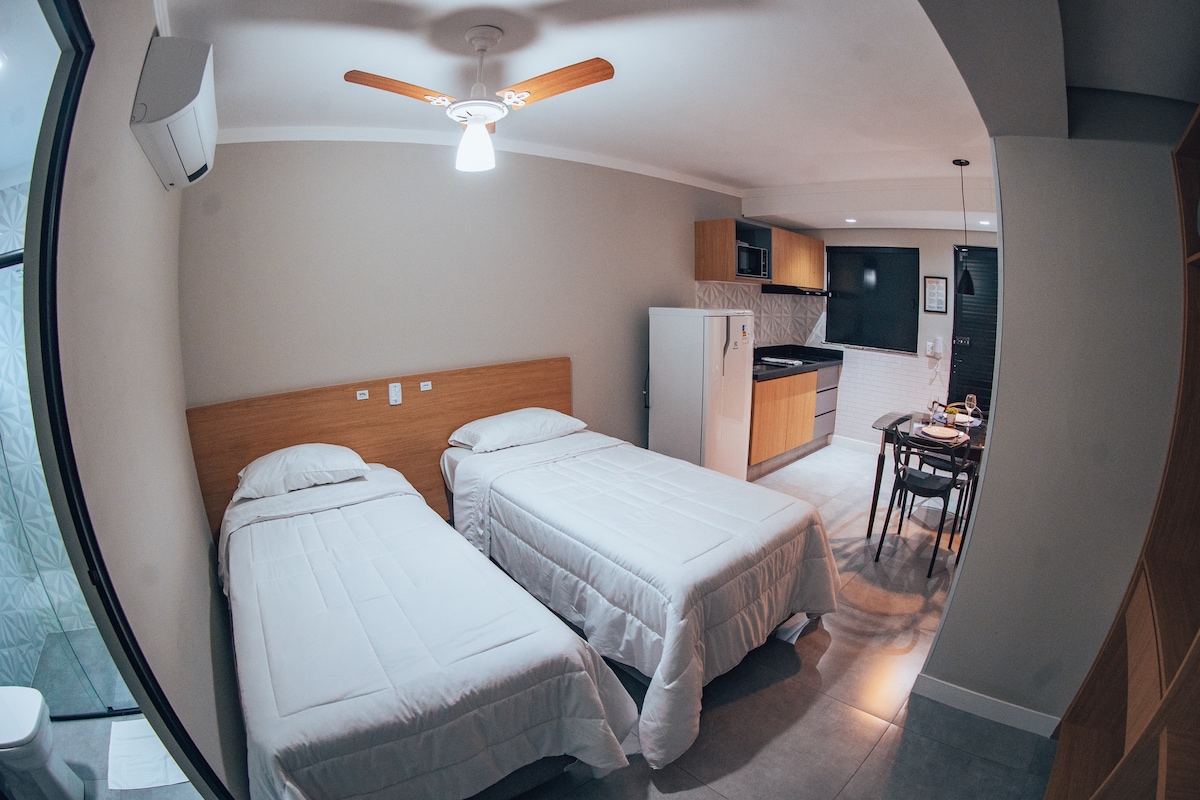 In a privileged and quiet location in Bauru. Next to Bauru Shopping, very close to Centrinho/USP, CPO, FACOP, Mondelli Institute. It is a modern, cozy space, full of style, comfort and air-conditioned, with morning sun. Your accommodation will be in a place prepared with great care and attention to detail, whether alone or accompanied (04 people). The condominium has a 24h concierge, gym, grocery store, laundry, pet space, covered and secure garage, and coworking.