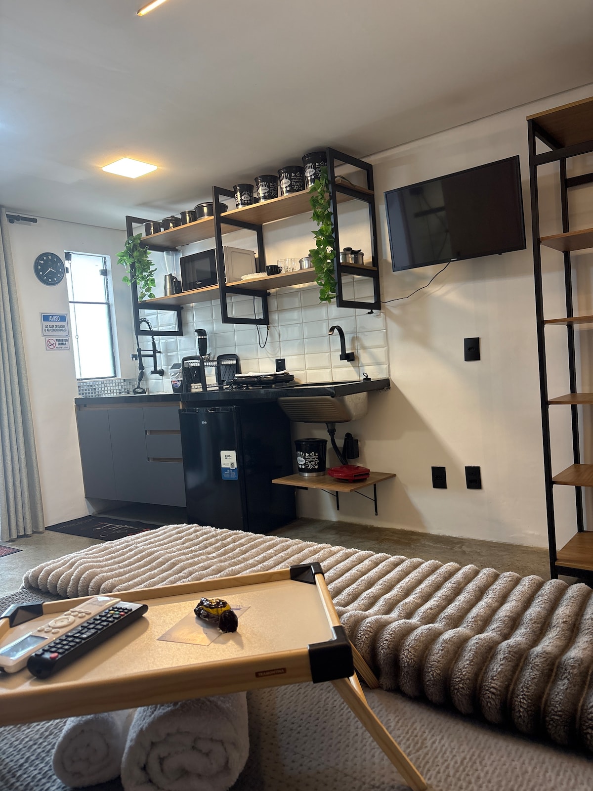 Studio aconchegante e bem localizado em Bauru. Seja a trabalho, estudos ou lazer, encontre aqui o lugar perfeito para a sua estadia!! Nosso Studio oferece conforto e tranquilidade, com localização estratégica. O espaço conta com: 1 cama de casal super queen; (oferecemos toalha e roupa de cama) Cozinha equipada com frigobar, microondas, cooktop e utensílios de cozinha; TV Smart; Wi-fi. Ao lado da lavanderia de auto atendimento Lavo!!!