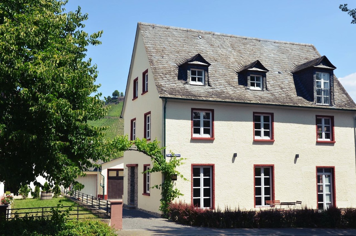 The Wine Quarter was built in 1937 by a family of winegrowers and was thus characterized by viticulture. Later it was then inhabited by a wine merchant. 2016 we bought the house and renovated over two years. Now we hope that you enjoy and experience the Mosel wine region in Pünderich, one of the charming places at the Middle Mosel.