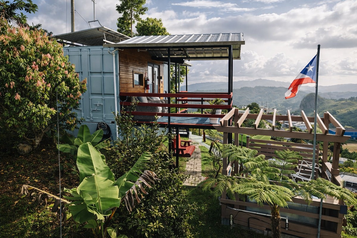 Descubre nuestra acogedora Casa Mini en Contenedor, un refugio pequeño pero lleno de comodidad, rodeado de naturaleza. Desde la terraza, disfruta de vistas panorámicas únicas de Puerto Rico mientras te relajas en un espacio con cocina equipada, baño completo ducha con agua caliente, toallas y Wifi. Ideal para descansar, disfrutar del aire fresco y vivir la montaña a tu propio ritmo.