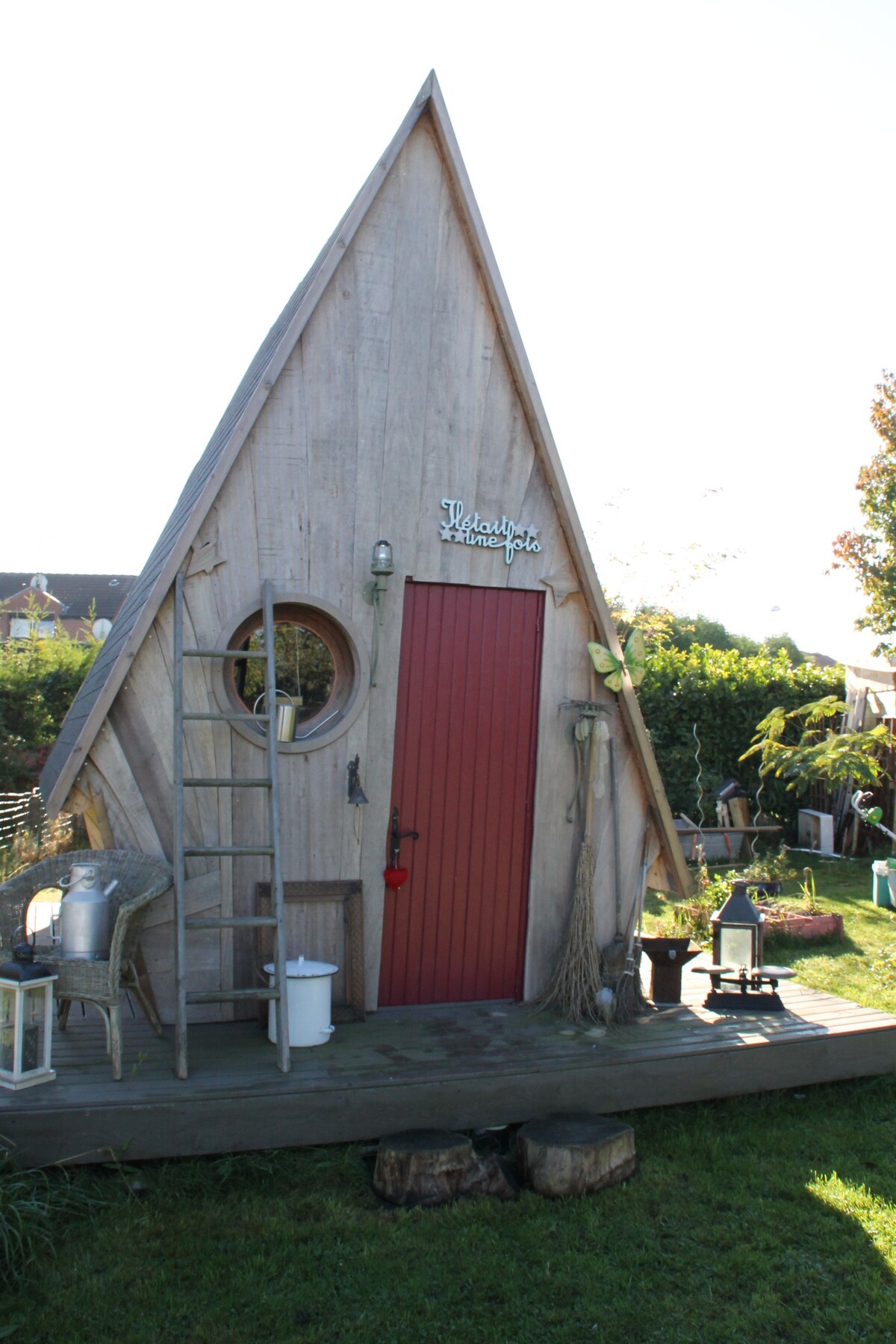 En rez-de-jardin, à l'arrière de notre maison, le "châlet" : un lit 2 pers, une mezzanine (enfant de 4 à 10 ans), un coin cuisine, une SdB, un WC. Au fond du jardin, la "cabane il était une fois" : un lit 2 pers. Vous dormez dans le "châlet" et disposez des commodités au même endroit, et/ou dans la "cabane" et devez traverser le jardin pour disposer des commodités. Nous pouvons accueillir de 1 à 5 personnes max. 1 voit ou 3 motos max peuvent être garées dans la cour sécurisée, portail auto.