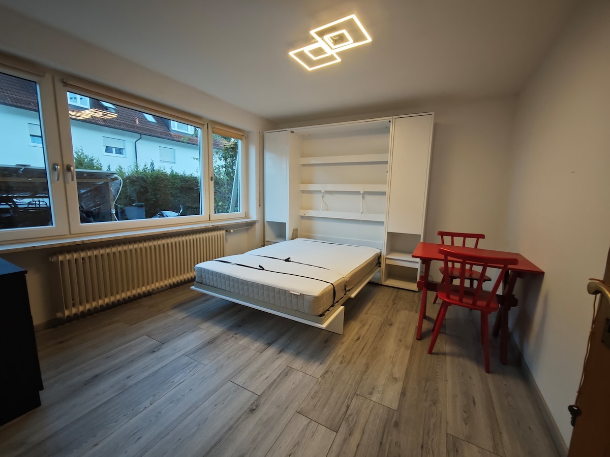 Bright, newly renovated one-room apartment. Quiet location in Munich’s south, 10 min to motorway, 30 min to city center by bus/U-Bahn. Free street parking available. Supermarket 3 min away, restaurants within 10 min walk. Fully equipped: mini kitchen, cooking utensils, private bathroom with shower. TV and internet in the room. 140×200 cm bed with fresh linen and towels.