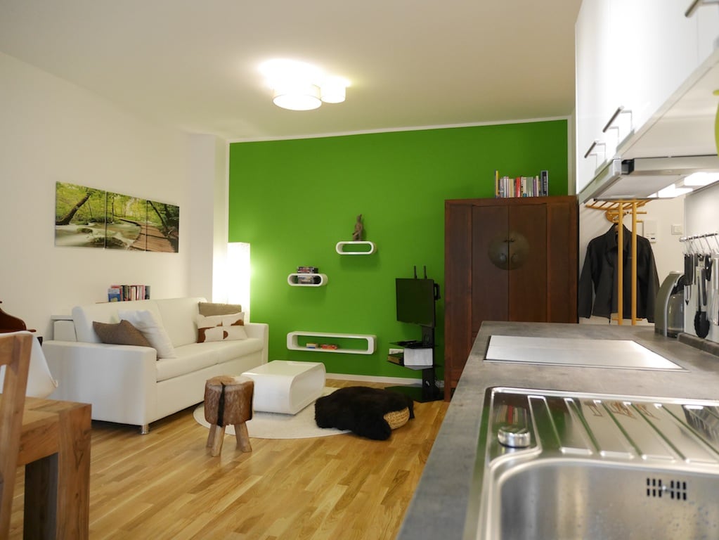 Night life center, Station, Marienplatz, Oktoberfest are close. Comfortable beds, original artworks, 3m dinner-table, kitchen, terrace, wifi, homecinema, Amazon Fire, Netflix, Hifi stereo soundsystem. Art-gallery and retreat in the middle of nightlife. Hip Glockenbach quarter, souterrain (basement), 2nd courtyard. Great for families (with children), couples, business travelers and retreats, writers, artists, actors, directors, musicians, philosophers and everyone in search for the exceptional.