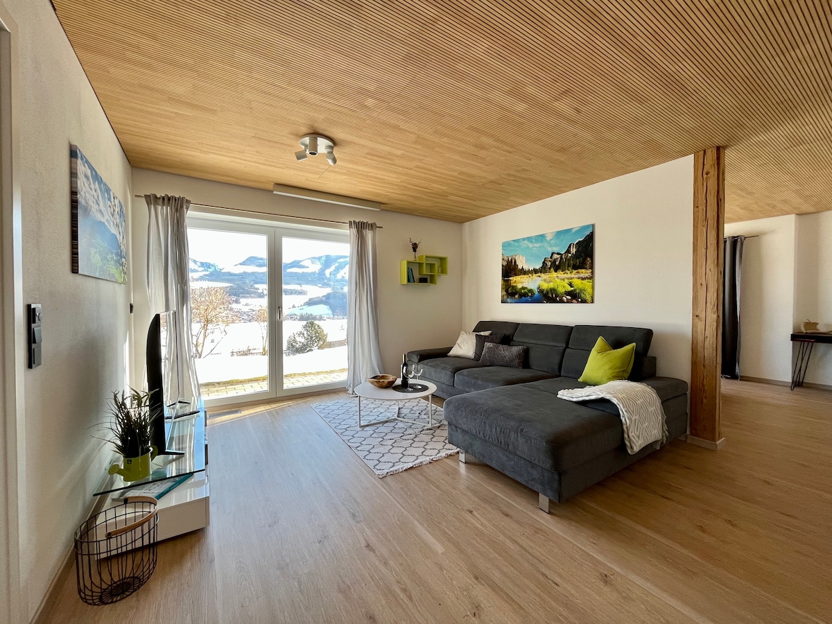 阿尔高地区阳光明媚的公寓,可俯瞰山景/山谷景观