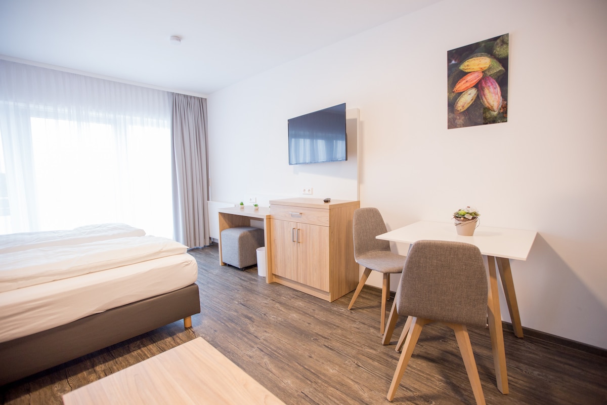 Welcome to BRIGHT in the center of Herzogenaurach! Our design studio apartments have everything you need for a nice stay: → King-size bed → Smart TV → NESPRESSO coffee → Kitchenette → Super centrally located, directly in the center of Herzogenaurach ☆"Everything very new, modern and tastefully furnished. Perfect and super central. Beautiful, large and very spacious rooms."