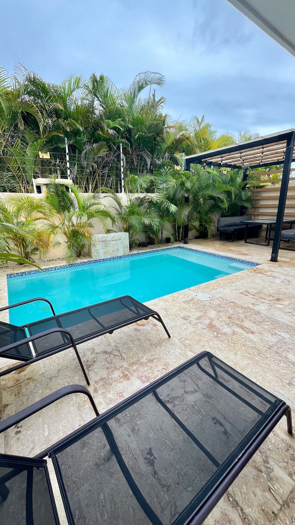 Disfruta en esta hermosa casa con piscina . Cuenta con 3 habitaciones, 2.5 baños, cocina, áreas amplias y frescas para relajarte en familia. Ubicada en una zona tranquila, segura y con fácil acceso. Perfecta para descansar! La energía no está incluida en la tarifa Además, te ofrecemos: taxi, excursiones a Isla Saona y Catalina, buggies, paseos a caballo, Monkey Land, Coco Bongo, fiestas en bote, El Dorado Water Park, Scape Park, zipline, y la emoción de manejar jetskis. organizamos todo por ti.