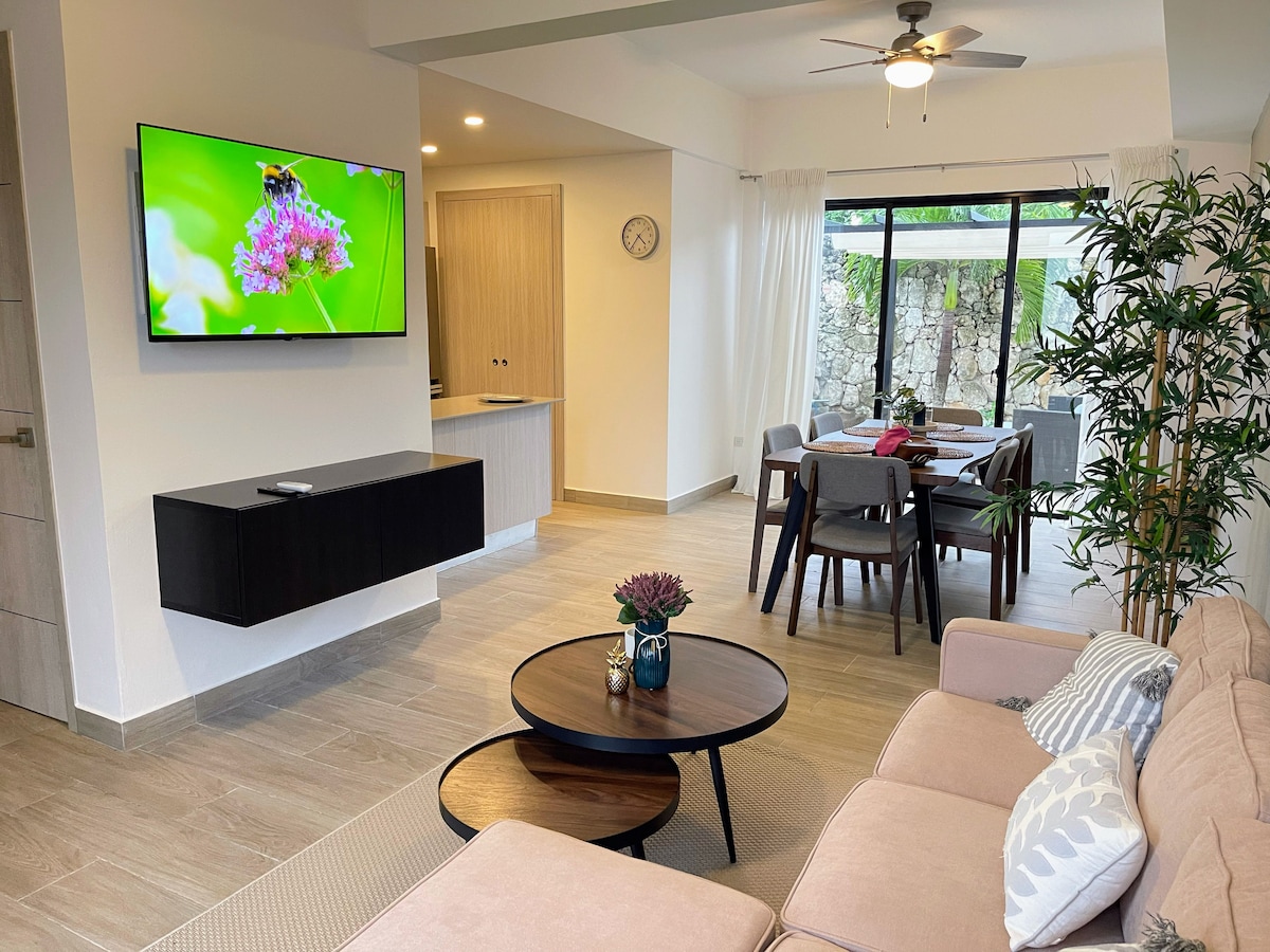 Escape to your private Punta Cana oasis! This newly built, stylish, and tastefully decorated 3BR condo is located in a secure gated community and is a 3-minute drive from downtown PC. Lounge by the private and cozy backyard pool, enjoy modern comforts (fast WiFi, fully stocked kitchen, AC), and immerse yourself in the vibrant local scene with easy access to dining, nightlife, beaches, and endless adventures. Book now and create unforgettable memories in this unique and family accommodation!