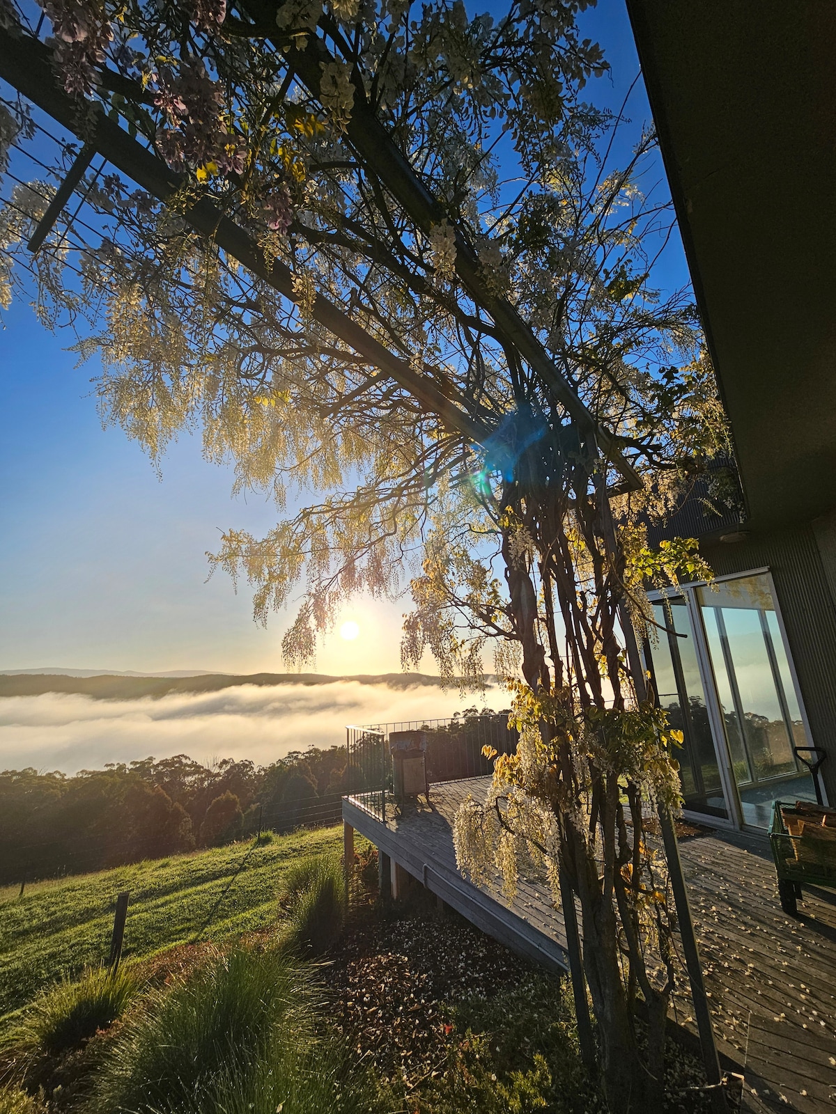 A stylish & private apartment, over the ground floor level of a two story house, on an acre of land with majestic mountain views awaits you in East Warburton. We are not always in residence, however if we are we do our utmost to ensure privacy & a peaceful stay for our guests. We are situated minutes from the Redwood Forest and Bodhivana Monastery with an 8 minute drive to Warburton township. An array of culinary experiences, walks, wineries, waterfalls and more will all be yours to discover