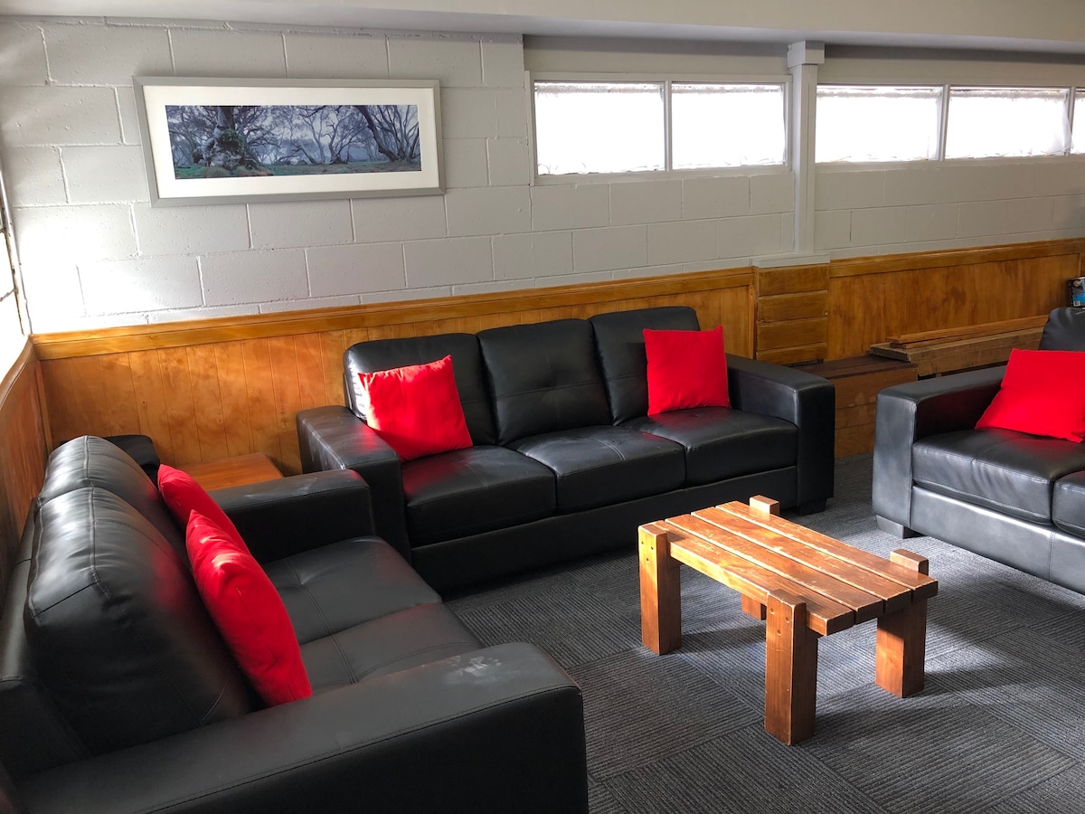 Room 2 sleeps 4–5 guests, with the option to add a cot or foldaway bed for $25 per night, including linen and towels. Room Features: • Linen and towels provided year-round • Lockable private bathroom (down two small flights of stairs) • Block-out blinds •. TV in bedroom • Beautiful views of the Maltese Ski Run Guests also have access to the shared fully equipped kitchen and dining area, lounge room, and drying room, plus board games, Netflix, and 10 toboggans for added fun.