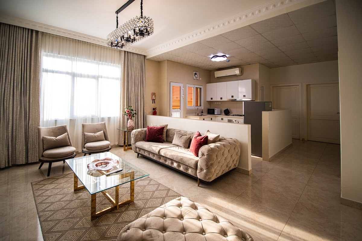 Luxury Bosher Apartment – Near Mall of Oman Experience upscale comfort in this 3‑bedroom apartment for up to 7 guests — perfect for families, business travelers, or groups. Highlights: • Premium beds with hotel‑quality linens • Spacious living area with elegant décor • Fully equipped kitchen for easy meals • High‑speed Wi‑Fi & Smart TV • Free parking & easy access to Muscat attractions Add‑Ons: Airport transfers, housekeeping, grocery pre‑stocking
