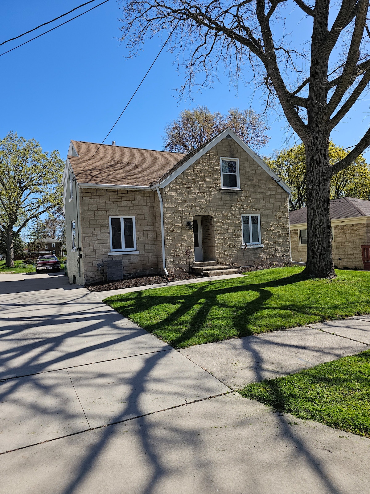 Escape to your private, super-clean Green Bay retreat! This recently refurbished 2-bed/1-bath duplex side comfortably fits a family or small group. Features a King & Queen bed, fully stocked kitchen, and a cozy living area. Enjoy the convenience of a private garage and a patio with a grill. Located in a quiet neighborhood, just a 14-minute drive from Lambeau Field. Perfect for a family vacation, getaway, or work trip.