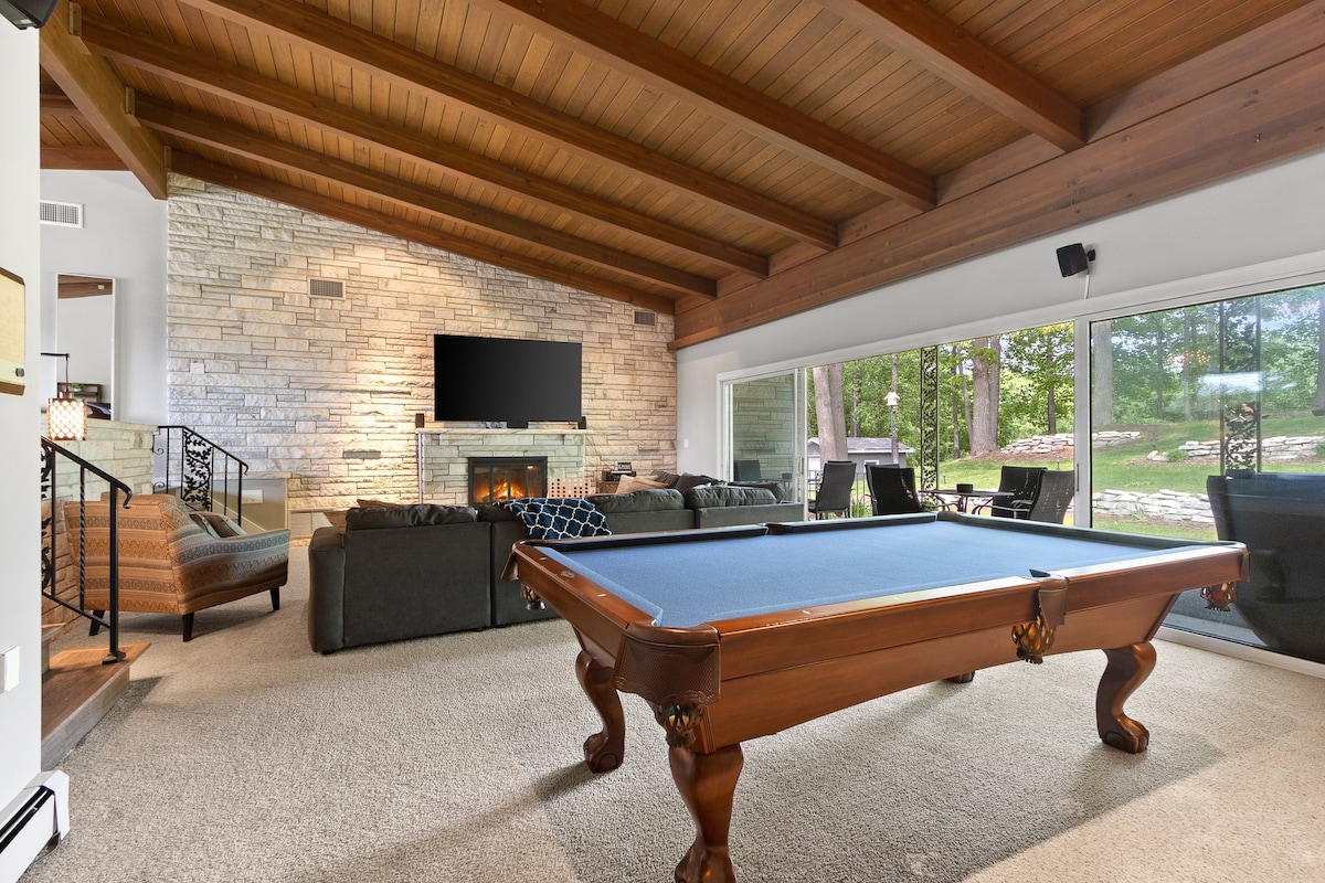 Treat yourself to the custom stylings of this 5,567-square-foot home in Green Bay. Just a 12-minute ride share to Lambeau Field and 8 minutes to downtown, the home’s location offers easy access to attractions, restaurants and shopping, while providing plenty of quiet space for relaxing and entertaining. With its five large bedrooms, the home is perfectly suited for larger groups (even your small dog is welcome!).