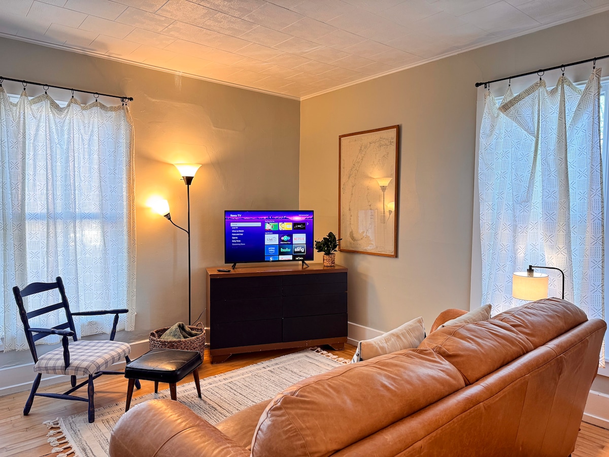 This recently renovated home blends an industrial vibe with the cozy comfort of home. It showcases original wood planking and craftsmanship from the early 1900s, adding character throughout. The open layout provides plenty of space, with a bedroom on the second level—perfect for relaxing with family or friends. This home is strictly for Airbnb travelers. No local residents will be accepted. Must be at least 25 years old to book.