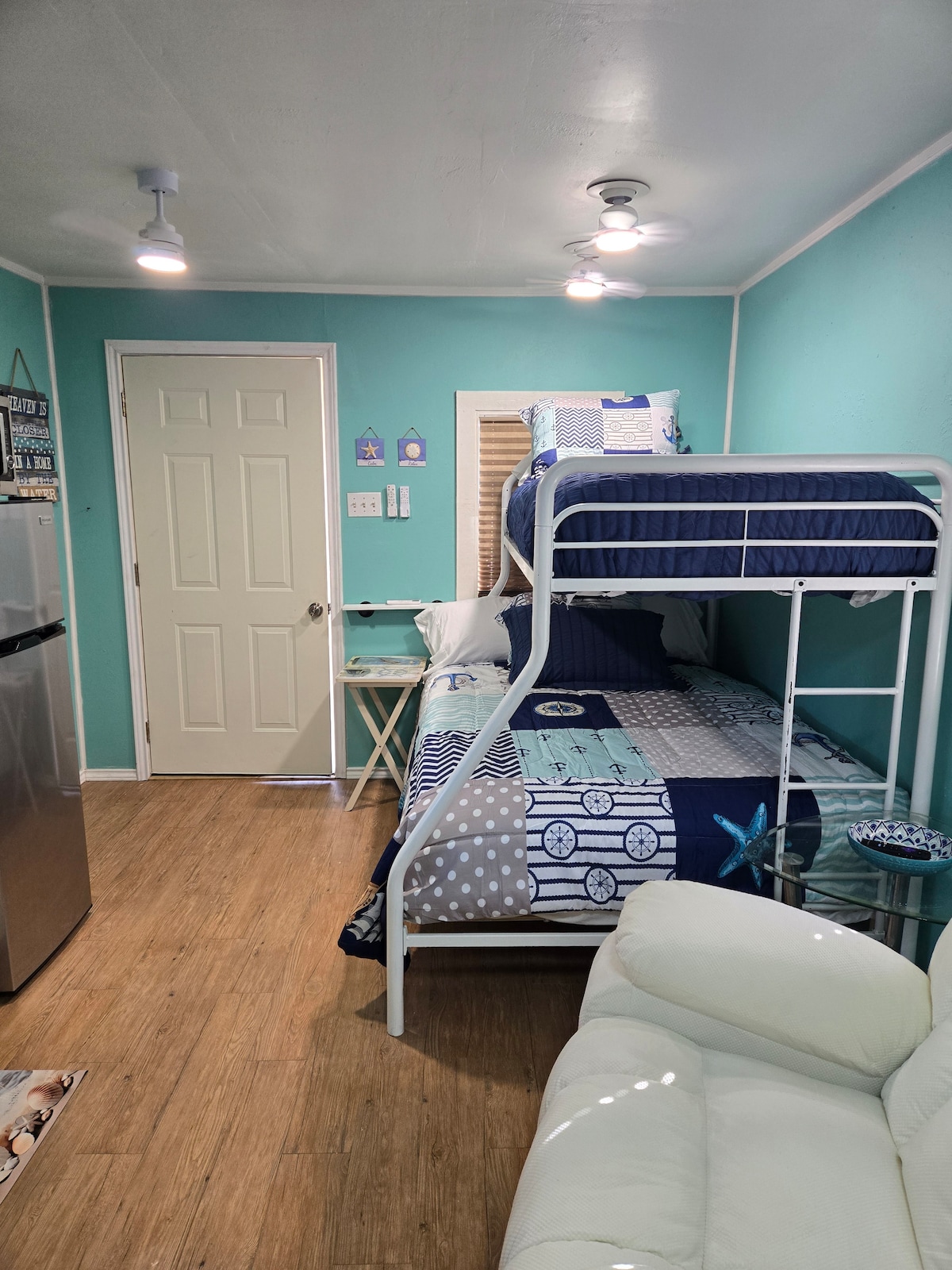 700 sqft bay house only half a mile from the Kellers Bay boat ramp and 10 minutes from Port Lavaca. Fully furnished with 2 bedrooms, 2 queen beds, 2 full size futons, and 1 bath. Sitting on 1 acre it has plenty trees to chill under, enjoy an evening fire, or sit on the huge front porch. It has a 24ft by 60ft drive big enough to park 2 vehicles with boats side by side.