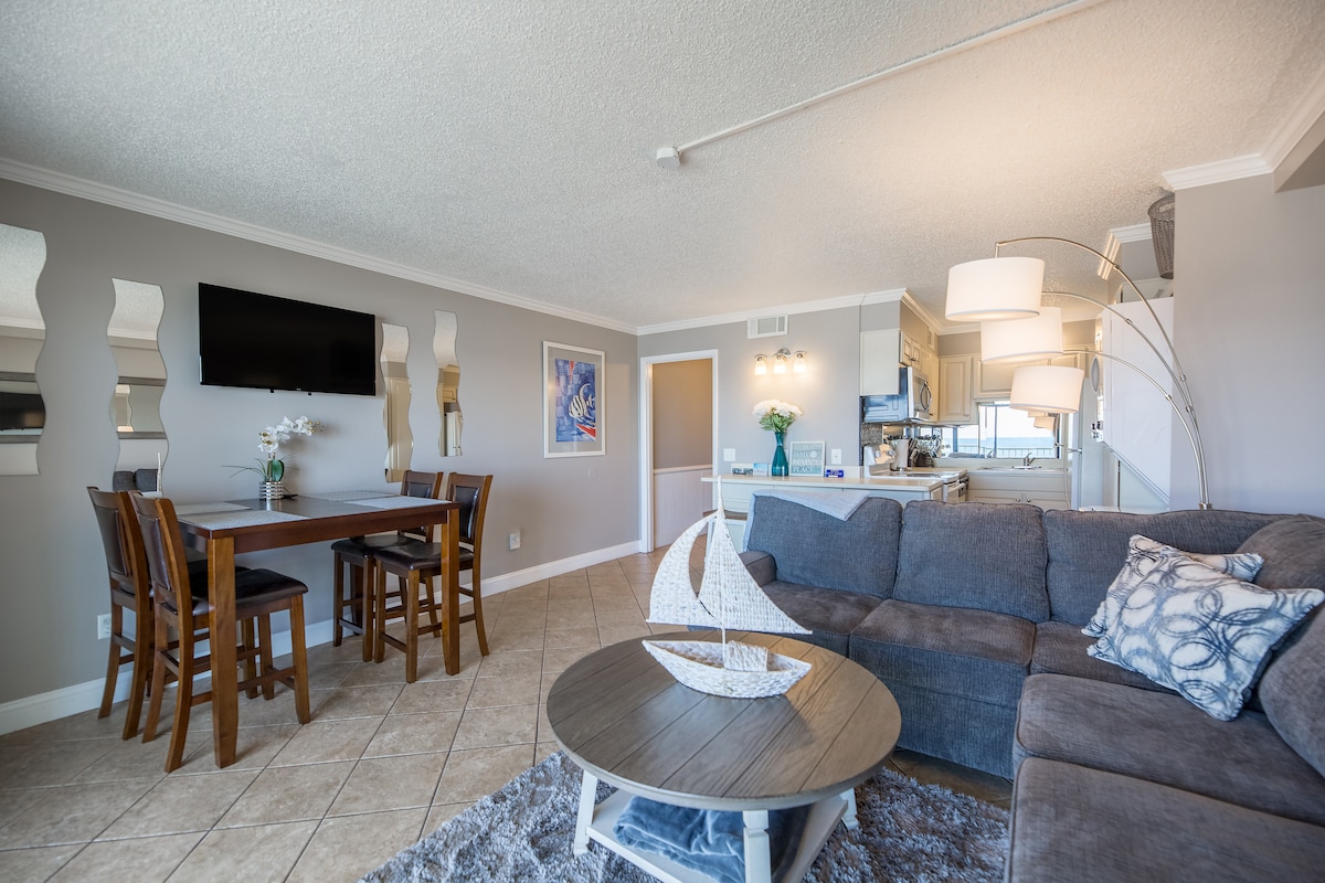 Splash - Gorgeous1BR/2Bath Family Friendly Condo-free WiFi/ Beach Chair Service-This condo is one of the highly coveted 1bedroom 2 bath condos. There is a great king bed in the master bedroom, a queen sofa sleeper in the living room and three twin beds (bunk) in the hall. This roomy condo has bedding for 7 people and is, of course, located right on the gulf, along with all of the other condos in Splash Resort.