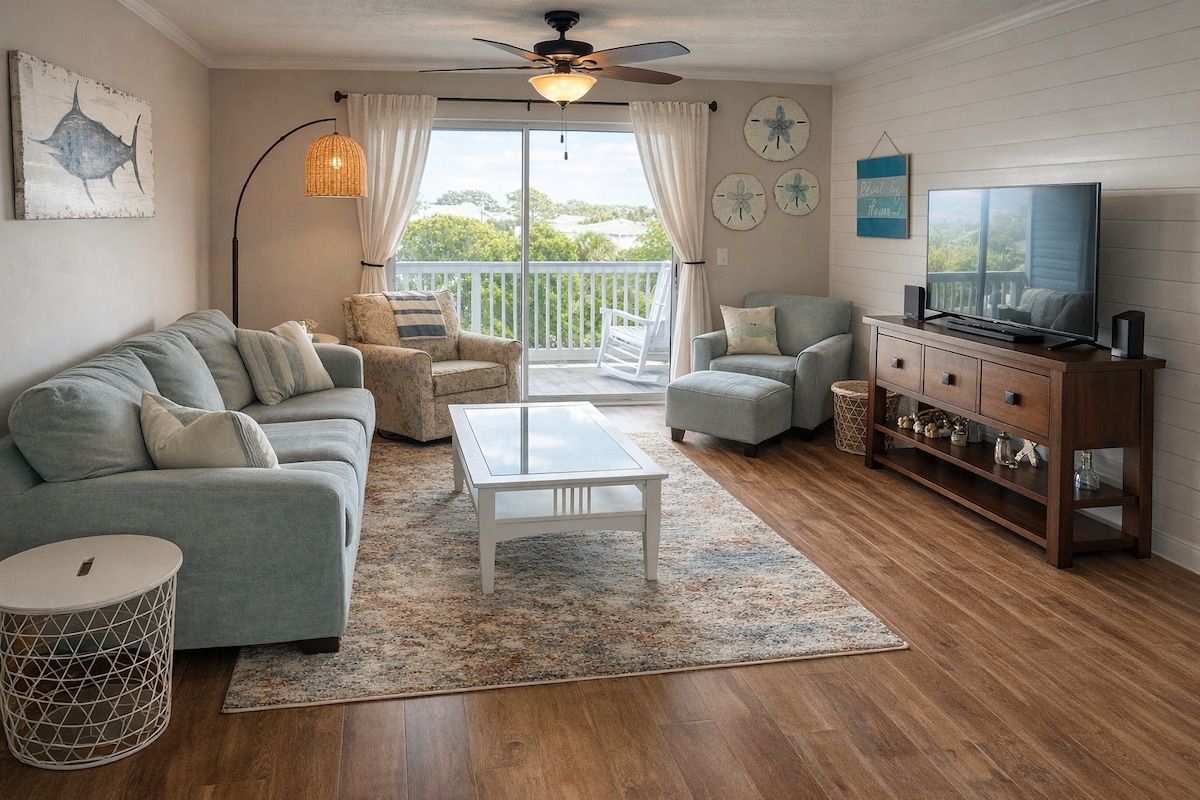 Located on Beautiful Bay Point. Only a few minute boat ride to Shell Island. St Andrew’s State Park is directly across the bay & a short car ride to the beautiful beach & Alligator Lake. Th Beautiful Pool w outdoor kitchens & Fire Pit. The Boardwalk has pontoons & other rentals directly behind the condo. New Paint, Carpet, Blinds & Furnishings. Beach/Pool Caddy, chairs, coolers, reusable plastic dishes, beach towels & pool and beach games. The beach’s stuff is,located throughout the condo.