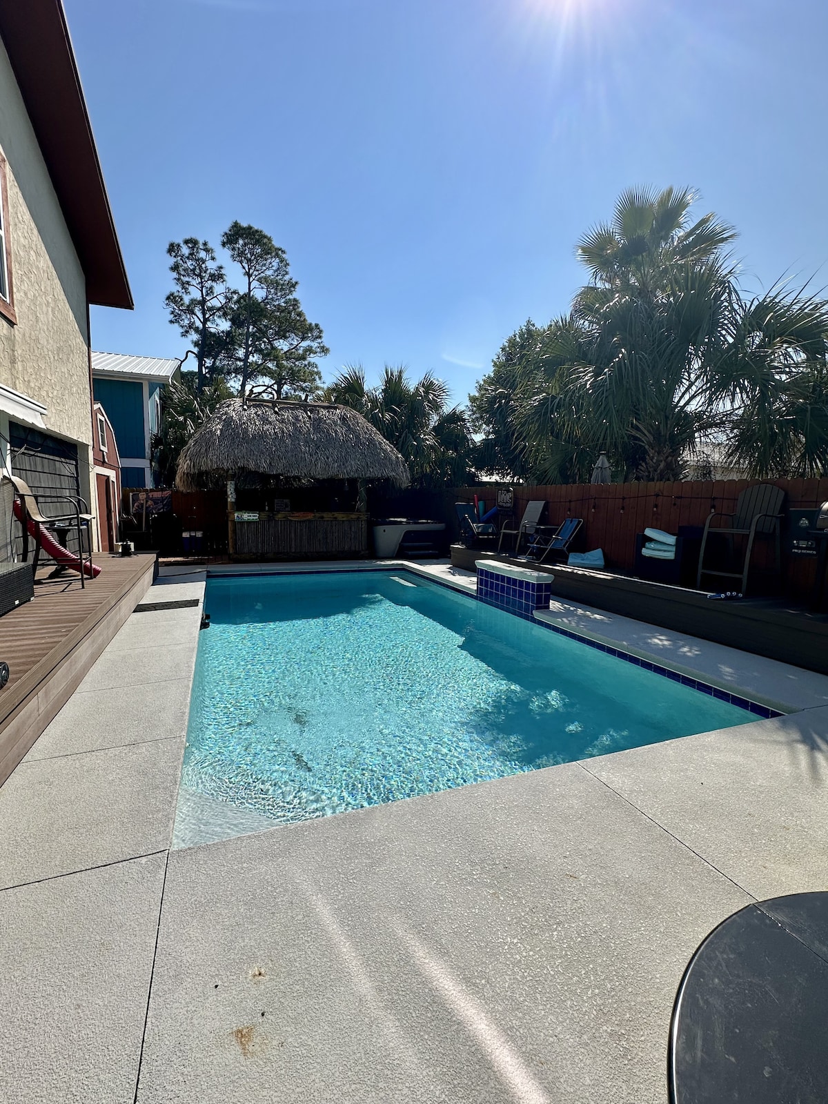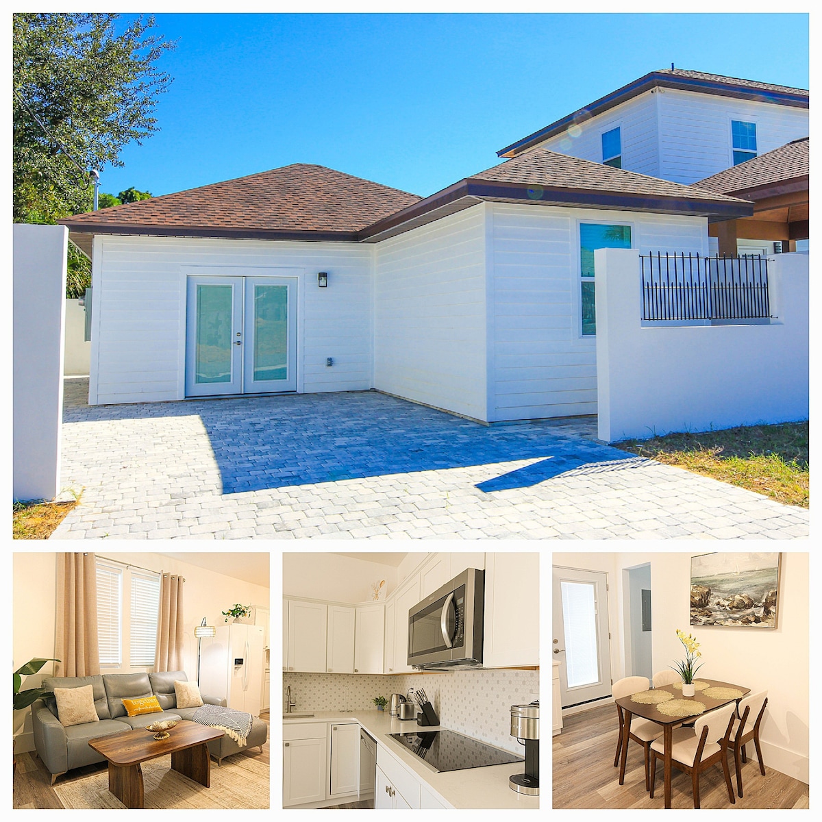 Escape to CovaCabana! Your private, design-forward coastal retreat. ☞ Saltwater pool (Heated-See HOUSE RULES: POOL) ☞ Spa-style shower ☞ Pavilion w/ 65" Smart TV ☞ Daybed lounge ☞ Full kitchen w/ quartz countertops ☞ Fast WiFi & Smart TV ✭ “All I can say is wow! The space is beautiful inside and out—my hubby couldn’t stop talking about it.” Tucked into Panama City’s historic Cove Terrace, you’re just 10 mins from downtown & St. Andrews, and a short drive to Panama City Beach and Mexico Beach.