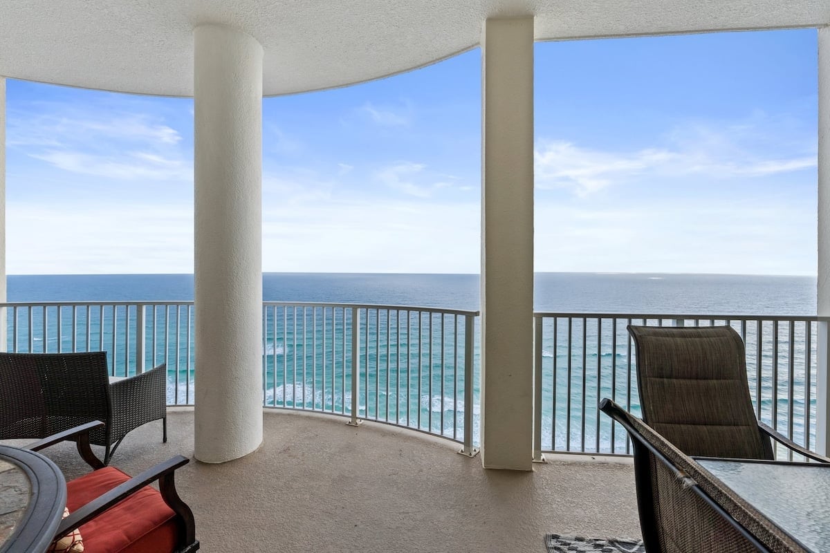 Welcome to your ultimate beach getaway! This luxurious second-floor unit offers the perfect blend of comfort, style, and convenience. Boasting peek-a-boo water views of the bay across the street, you'll start each day with a glimpse of paradise. Just a 9-minute drive from the pristine white sandy beaches and St. Andrews State Park. Close to the marina and dining hotspots. The property complex features its very own pickleball court, perfect for some fun and friendly competition during your stay!