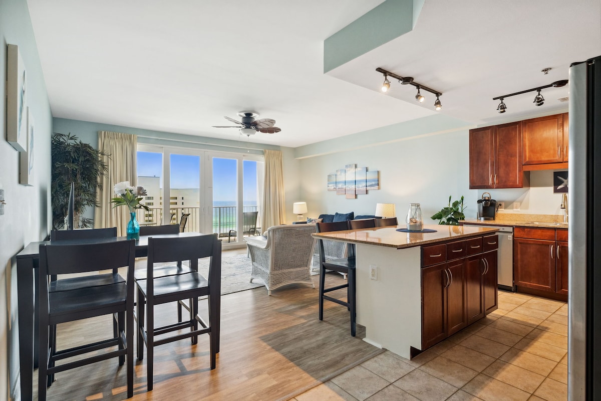 Studio Suite 906 features premium furnishings, including a king-size bed and a queen sofa sleeper in the living area. Enjoy a smart TV and a fully stocked kitchen for all your cooking needs, along with a washer and dryer for added convenience. This condo is located right on the gulf offering fabulous views of the gulf and the lagoon pool. Age requirement 21 $75 Registration fee on-site. NOTICE: Ongoing Exterior Construction Improvements, May be disruptive and loud
