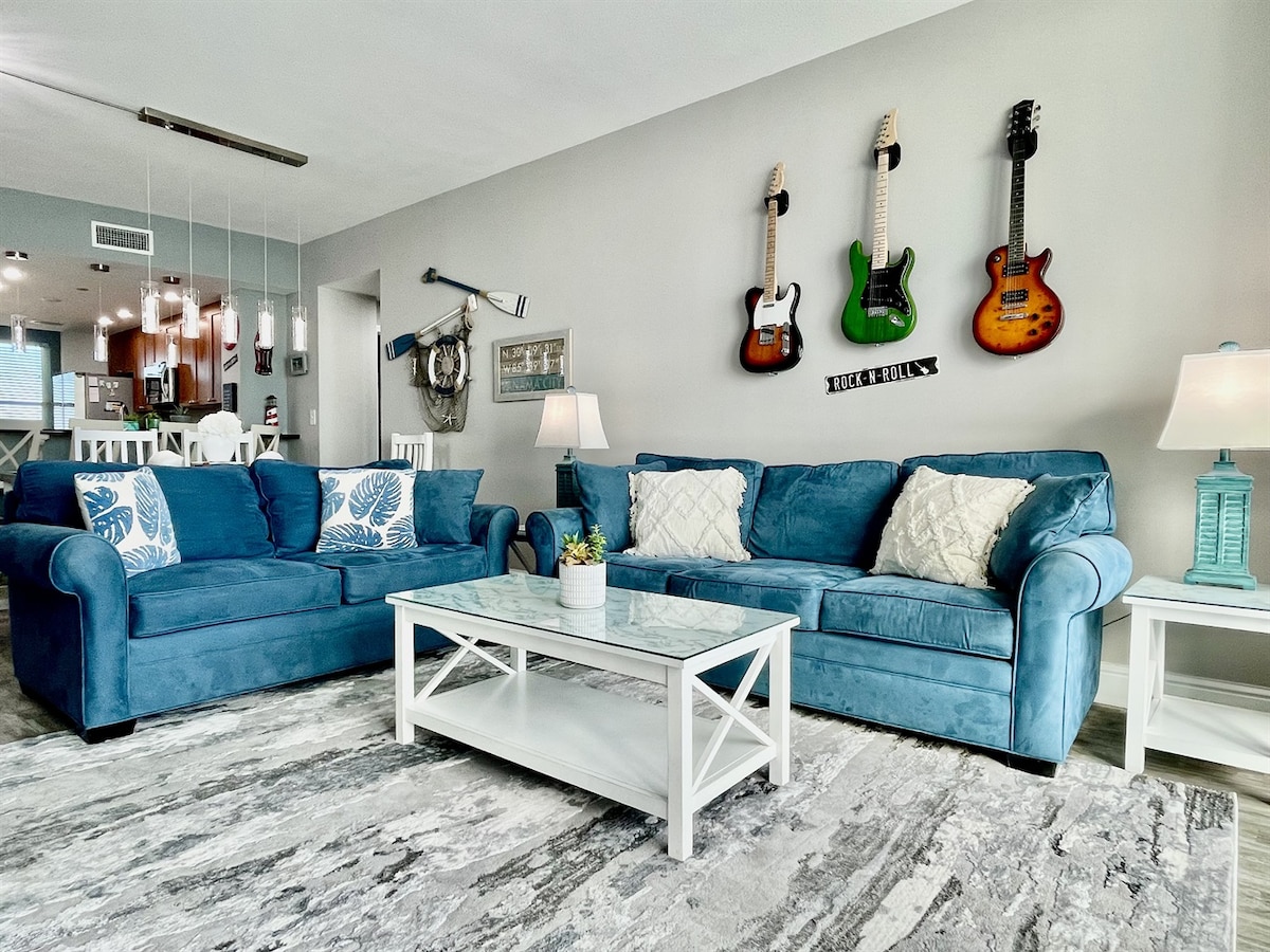 Beautiful 2-Bedroom, 2-Bath Condo Just Steps from the Beach! Both bedrooms feature king-size beds and en suite bathrooms—with the master offering a relaxing garden tub. There’s also a Murphy bed in the living room and a huge sectional sofa for extra sleeping space and comfort. Enjoy your morning coffee, dinner or evening cocktails on the large, covered balcony. Free covered parking is available right under the building, and luggage carts/elevators make unloading a breeze! Looking for a peacef