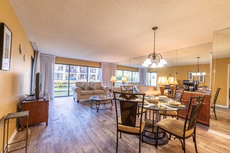 Beach Fun! 7-8 minute walk to beach right in the middle of PCB! Park right in front of townhouse. Hassle free NO elevators or steps to entrance door. Beach side pool with food and drinks. 10 more pools available on resort. Right in the middle of PCB! Short drive to all attractions....Shipwreck Island, Ripley's Believe It or Not, Pier Park, Frank Brown Ball Park, Gulf World, St. Andrews State Park, Shell Island , restaurants and much more! Golf Cart available for rent to use at the resort.