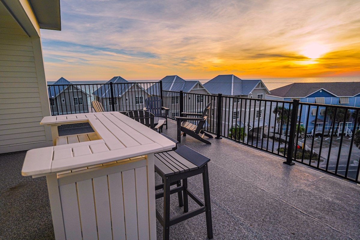 Welcome to The Salty Blue, a spacious three-story beach villa in Panama City Beach designed for families and groups. ★ No Chores Checkout ★ Rooftop Deck ★ Ocean + Sunset View ★ Game Room + Arcade ★ Foosball/Mini Pool Table ★ 2 Outdoor Showers ★ Corn Hole + Giant Jenga ★ Hook & Ring Game ★ Board Games + Puzzles ★ High-Speed WiFi ★ Ceiling Fans + Smart TVs Throughout ★ Free Parking for 3 Cars ★ Blackstone Grill ★ 3 minute Easy Walk to Beach ★ Sand Toys ★ Firepit ★ Highchair + 2 Graco Pack&Plays