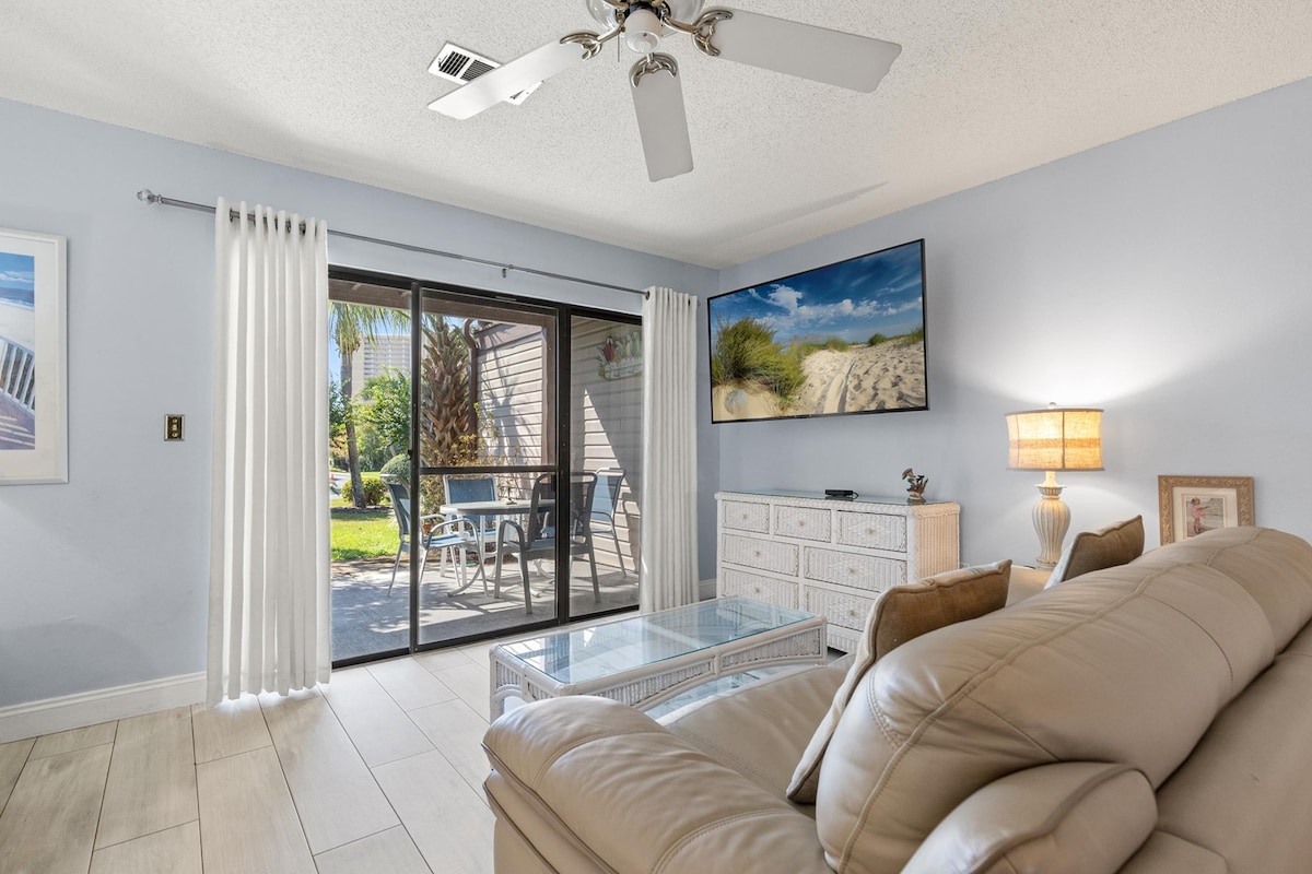 This Beautiful Villa is a 1 minute walk to swimming pool, 3 minute walk to the resorts private beach and Panhandles largest lagoon pool via the resorts walkway bridge. Resort is surrounded by a variety of restaurants and shops, many directly across the street from the resort entrance. Your patio looks out over the gorgeous golf course with a lBeautiful Pond and Fountain, where you can enjoy stunning sunsets, sunrises or watch a great golf game. Age Requirement at this resort is 25