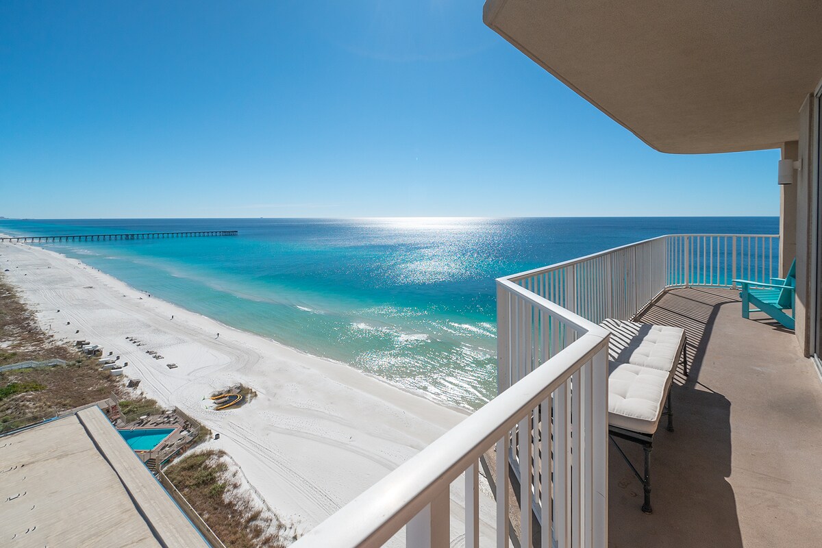FREE BEACH CHAIRS/UMBRELLA included with the reservation thru (March 15 - October 31). It's Located right on the beach in beautiful PCB!! This unit has a king bed, and 3 recliners. It has a full kitchen and a private balcony. It's within walking distance to Gulf World, Pier Park, and many restaurants. The bathroom has a beautiful walk-in shower. This room has its own washer/Dryer. It also has a Beachside café and seasonally heated pool on the property!