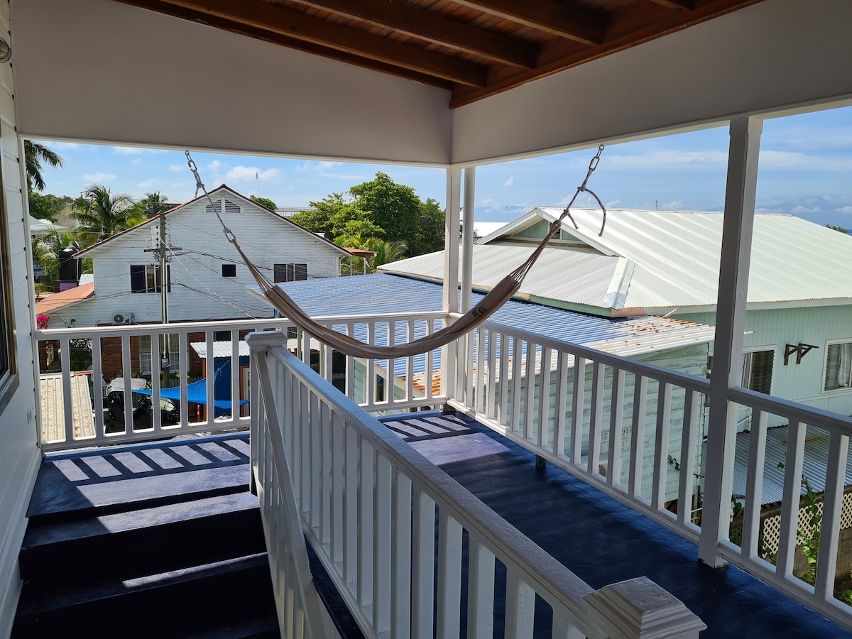 Posada Arco Iris has best location in West End"village". In front of the beach, Apartment is max for 4 people , has equipped kitchen , bathroom with hot water, private porch with hammock, air conditioning .There is a generator free wi-fi at the property, also free kayak and beach chairs use.Family friendly Apartment right in front of the beach.