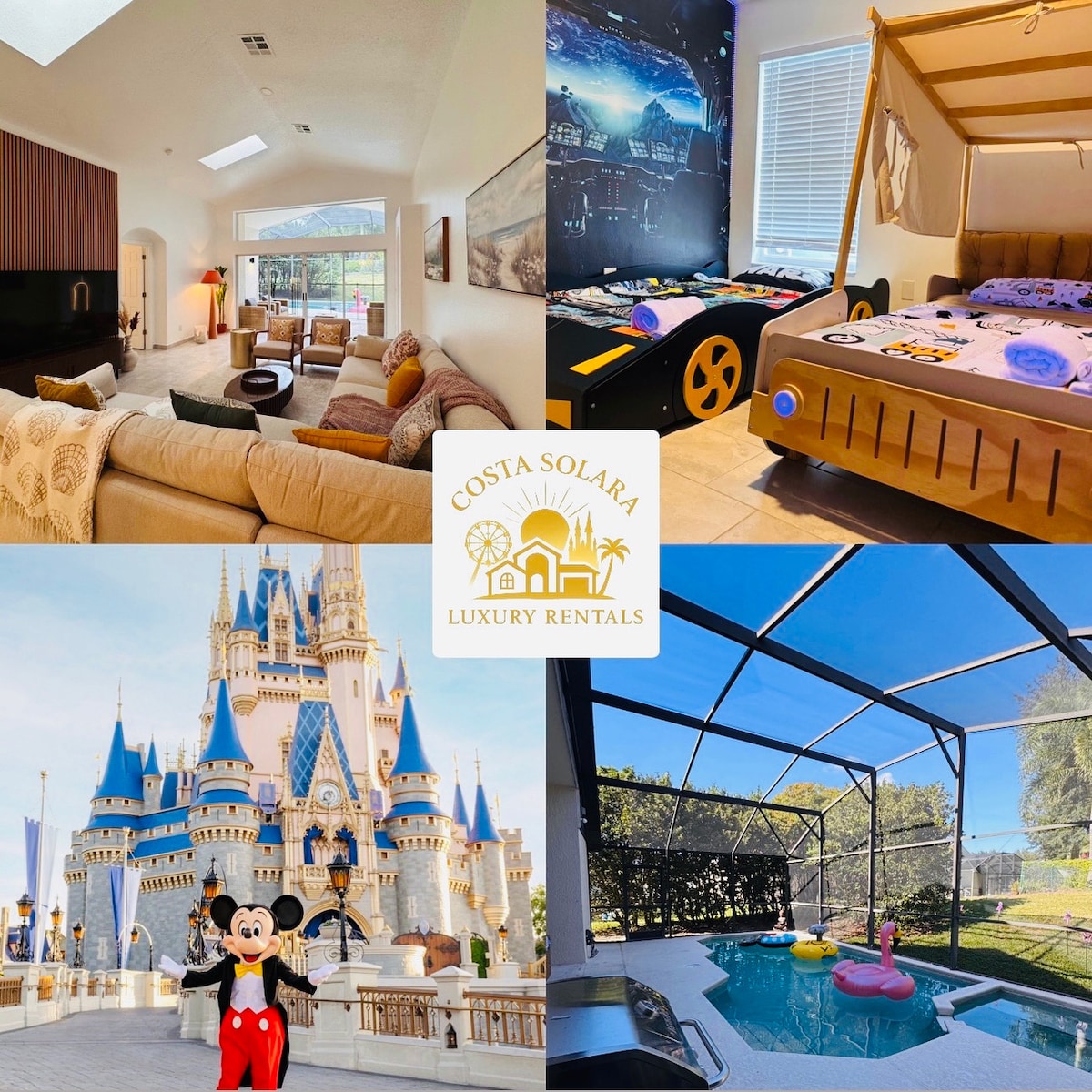 Enjoy a luxury stay in this stunning 6-bedroom home at Solara Resort 🏡✨ featuring a private pool, movie-style loft, and game zone. Guests enjoy full access to resort-style amenities including a massive heated pool, FlowRider surf simulator, gym, sports courts, restaurant, and tiki bar. Prime location minutes from Disney, Universal, outlets, and dining. Perfect for families and large groups. 🌴☀️