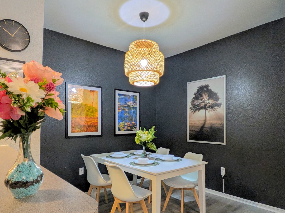 Welcome to Sunny Oasis, your perfect escape in the heart of Orlando. Immerse yourself in a beautifully curated Boho ambiance, filled with natural textures, earthy tones, and sunlit spaces. Whether you’re relaxing after a day at the parks or enjoying a peaceful getaway, Sunny Oasis offers the comfort and serenity you deserve. Book your stay with us and experience the allure of Orlando’s attractions in a clean, serene, and superbly located getaway.