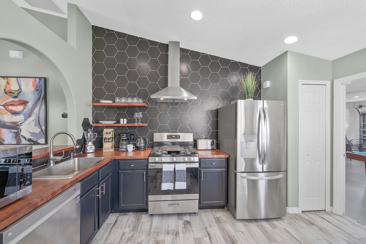 奥兰多别墅!温水泳池、热水浴缸和游戏室!