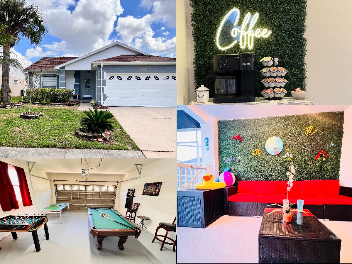 Unwind in this sunny 4 Bedroom 3 Bath house nestled in a serene family-friendly neighborhood. This prime location allows quick access to nearby restaurants and shops while being just a short drive away from Disney World, Universal, Legoland, and more. The lively pool deck and entertaining game room offer various relaxing and fun amenities. ✔ 4 Comfortable Bedrooms ✔ 3 Large Bathrooms ✔ Fully Equipped Kitchen ✔ Swimming Pool ✔ Game Room ✔ Six TVs w/ Roku ✔ Sun Loungers Learn more below!
