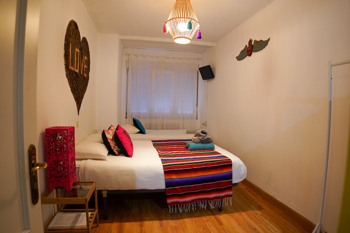 Nuestras habitaciones triples con ducha y lavabo privado cuentan con una cama matrimonial y una cama individual. El wc se encuentra en el rellano compartido con cuatro o cinco habitaciones, siempre limpio y cuidado. Cuentan con ropa de cama, calefacción los meses de invierno, smart tv, armario o perchero, toallas y gel de ducha. Limpieza de habitaciones cada dos noches. Ideales para descansar después de un día de playa, surf, aventuras o sentirte como en casa mientras recorres Asturias.