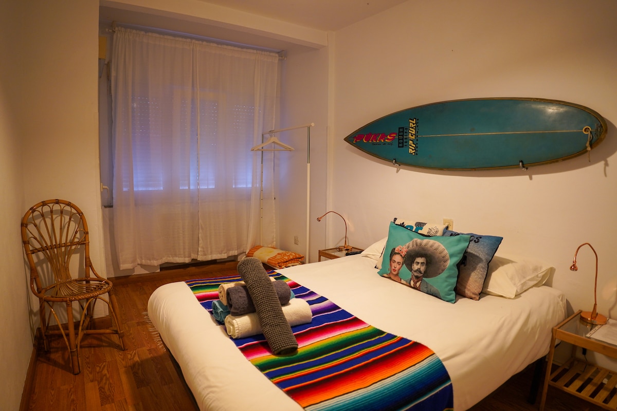 Nuestras habitaciones dobles con cama matrimonial y ducha y lavabo privado son perfectas para relajarse en pareja o con las personas que más quieres. El wc se encuentra en el rellano compartido con cuatro o cinco habitaciones, siempre cuidado. Cuentan con ropa de cama, calefacción los meses de invierno, smart tv, armario o perchero, toallas y gel de ducha. Limpieza de habitaciones cada dos noches. Ideales para descansar después de un día de playa, surf, aventuras o mientras recorres Asturias.