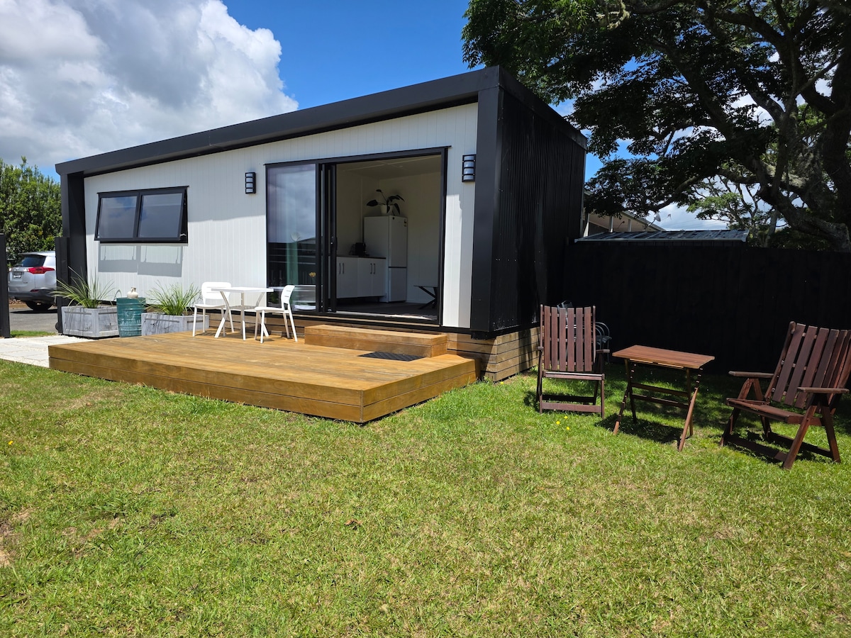 Here is something a little different and special. If you are after a relaxing holiday experience surrounded by nature, but want more creature comforts than camping can provide, then this beautiful open plan deck and separate cabin is just for you! Tucked away in a garden oasis, this property has a seaview over Mill Bay and across to the Karikari Peninsula. The spacious covered deck for entertaining includes a fully powered utility with kitchen, bathroom and laundry.