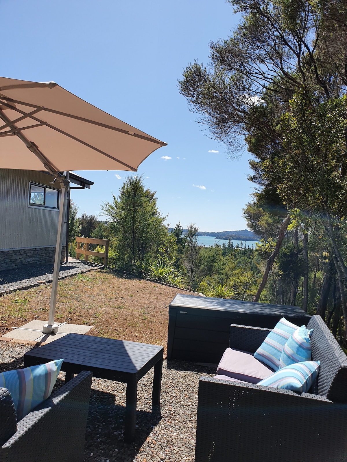 No hidden charges. Self catering apartment with water, bush and garden views. King bed with quality linen, ensuite -great water pressure. Dine at breakfast bar overlooking garden and harbour, or alfresco on the deck. Kitchenette has microwave and mini oven, hot plate and air fryer. 2 outdoor seating options plus hammock. Wake up to birdsong and enjoy this comfortable piece of paradise. Spa pool treated with minerals not chemicals, heated to suit the season. SUPs, Kayaks, Bikes available.