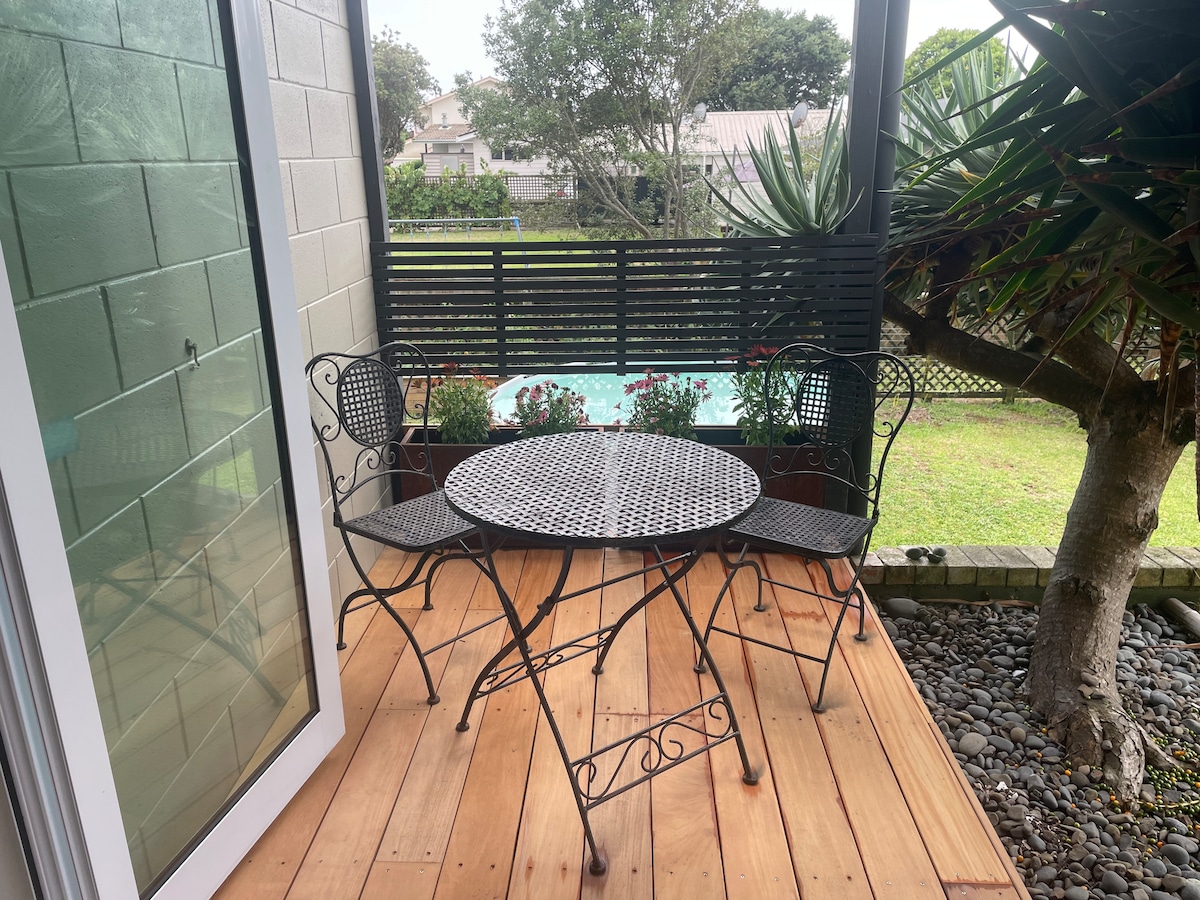Our place is close to Sports ground, beach, cafe and bush walks. You’ll love our place because of the modern facilities and the chance to experience true Kiwi hospitality . Our place is ideal for couples and business travelers. You have your own private entrance and parking. We have built this modern home to be separated into two apartments divided by privacy doors. The Apartment has many features that will delight you. In the winter the log fire keeps the place warm and cosy.