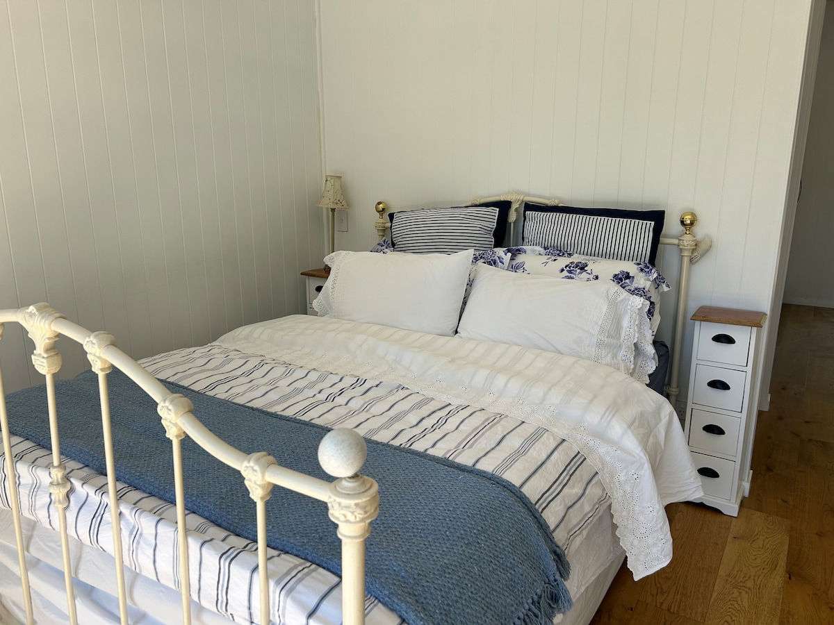 This studio-sized cabin is self-contained and approximately 100 meters from the main house. It has a very comfortable Queen-size bed with an electric blanket for colder months. A spacious deck with waterfall views and walnut trees compliments the cabin. It is situated on a 20-acre rural property, with a 20-minute drive to downtown Tauranga and a 10-minute drive to Bethlehem and Tauriko Crossing, offering dining and shopping options. Continental breakfast is included. Uber Eats also delivers!