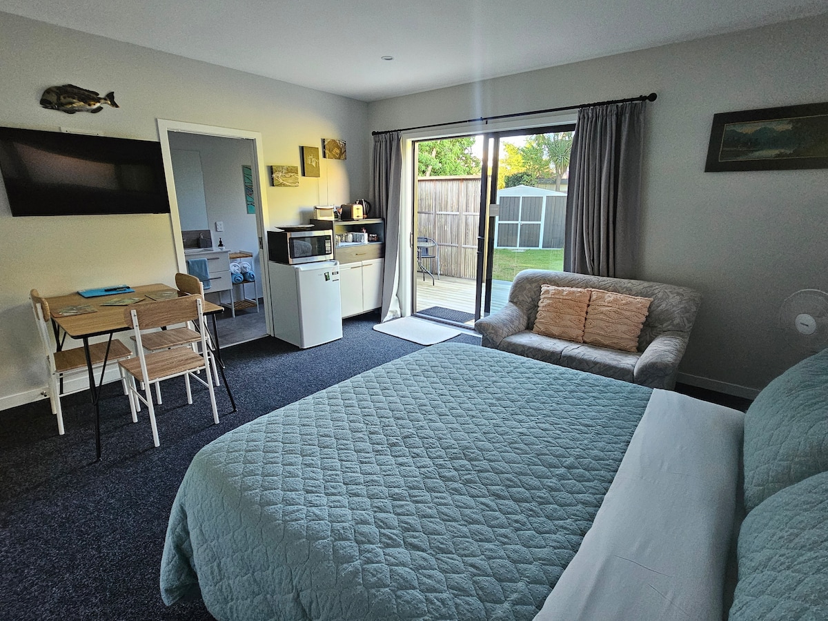 Located at the rear of our full size section, this new purpose built studio is the perfect place for your next beach escape. Only a 2 minute walk to the beach and 7 minute walk to the local shopping centre. The studio has its own deck and lawn area to enjoy the sunshine and take in the stunning sunsets over Papamoa Hills. Fitted out with all new items, we haven’t spared any expense to ensure you won’t be disappointed with your stay.