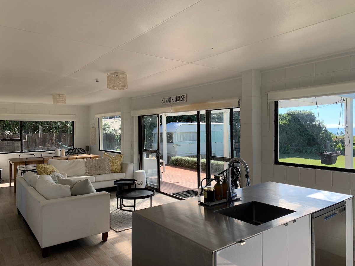 This truely is the quintessential kiwi bach. Just one block from the beach and surf life saving club at Whangamata the bach is located on a large peaceful section. You won’t beat it for indoor out door flow with a gorgeous, large, covered deck where you will no doubt spend much of your time - outside but protected from the Whangamatā sunshine. A fully fenced section so the kids will be safe. Bedroom 1 king sized bed. Bedroom 2, twin beds OR king. Couch in the sunroom can be a bed for a child