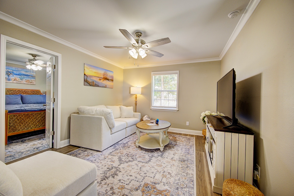 This modern cottage is perfect for small getaways or for spending ample time in the #5 Best Small Coastal Town in America. You will find everything you need in the house. And if you are looking to enjoy a night out, a comfy breakfast, a nice dinner with views, live music, local shopping?--just a short walk away to EVERYTHING in Old Town BSL. Don't feel like walking? Rent a golf cart and roam the streets of this majestic town. Oh, and don't forget to say HI to the ducks in the backyard!