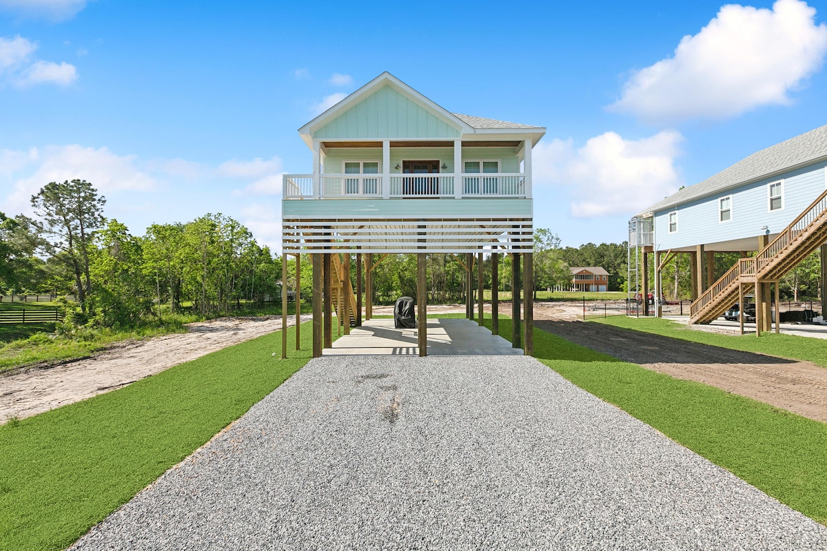 Welcome to The High Blue Bungalow! Elevated and elegant, a peaceful coastal retreat just two blocks from the water, and a quick golf cart ride to Old Town Bay St. Louis. Enjoy high-end finishes, a designer kitchen, cozy yet luxurious furnishings, and outdoor dining. Tucked away on a quiet street, off of N Beach Blvd, but close to everything—shops, restaurants, and unforgettable sunsets await!