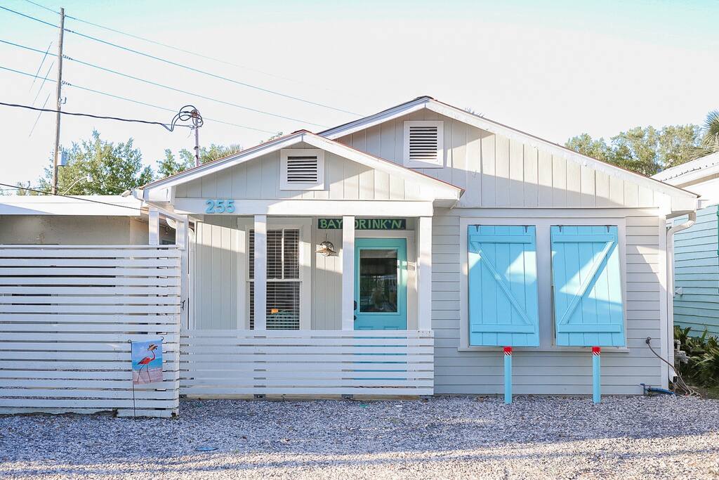 This modern cottage is perfect for small getaways or for spending ample time in the #5 Best Small Coastal Town in America. You will find everything you need in the house. And if you are looking to enjoy a night out, a comfy breakfast, a nice dinner with views, live music, local shopping?--just a short walk away to EVERYTHING in Old Town BSL. Don't feel like walking? Rent a golf cart and roam the streets of this majestic town. Oh, and don't forget to say HI to the ducks in the backyard!